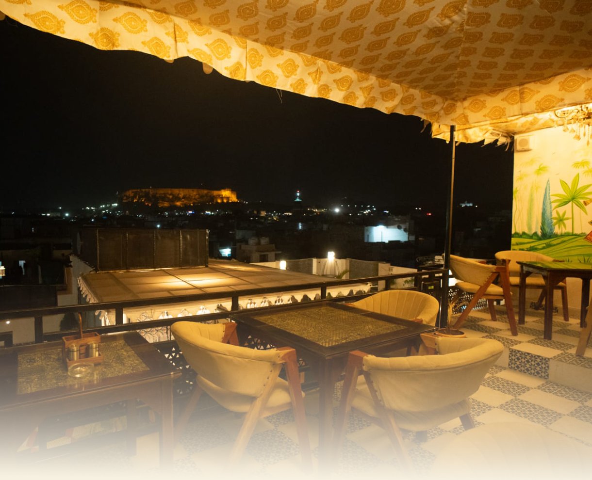 Food and leisure are at the heart of L 2 Darbar Kothi. Guests can indulge in delightful flavors at our café and restaurants, enjoy refreshing moments at our in-house bars, or soak in panoramic views at our charming rooftop café — the perfect setting for memorable evenings under the sky.